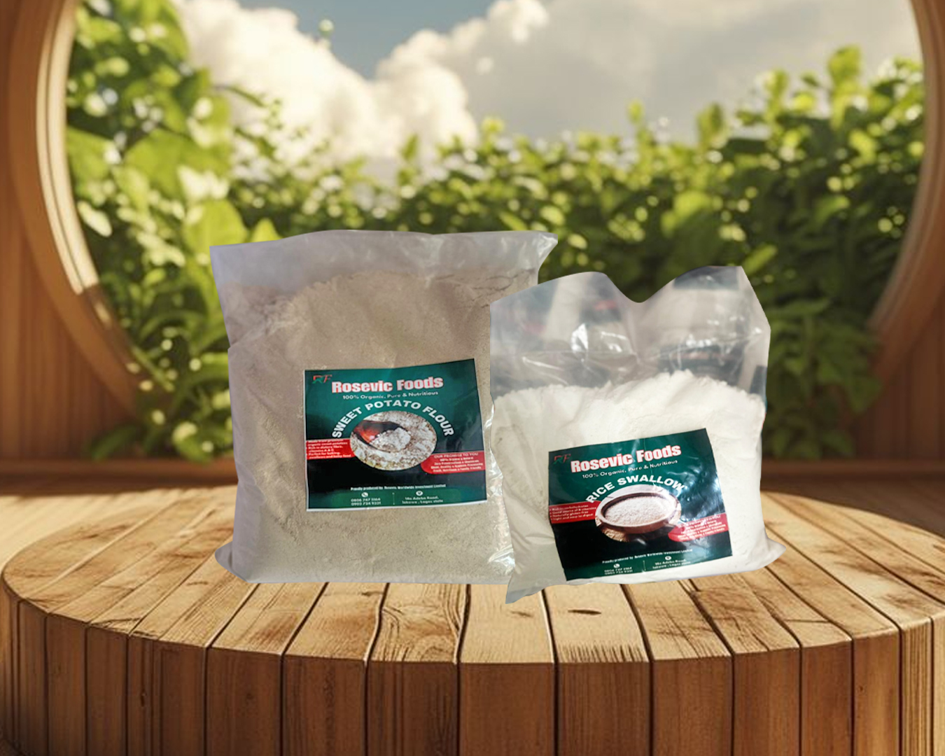 Traditional Nigerian flours such as plantain flour, amala, sweet potato flour, wheat flour, beans flour, rice swallow, and Tom Brown play an important role in balanced diets and cultural meals. These flours are used to prepare nourishing swallows, breakfast meals, and health-focused alternatives to refined foods.