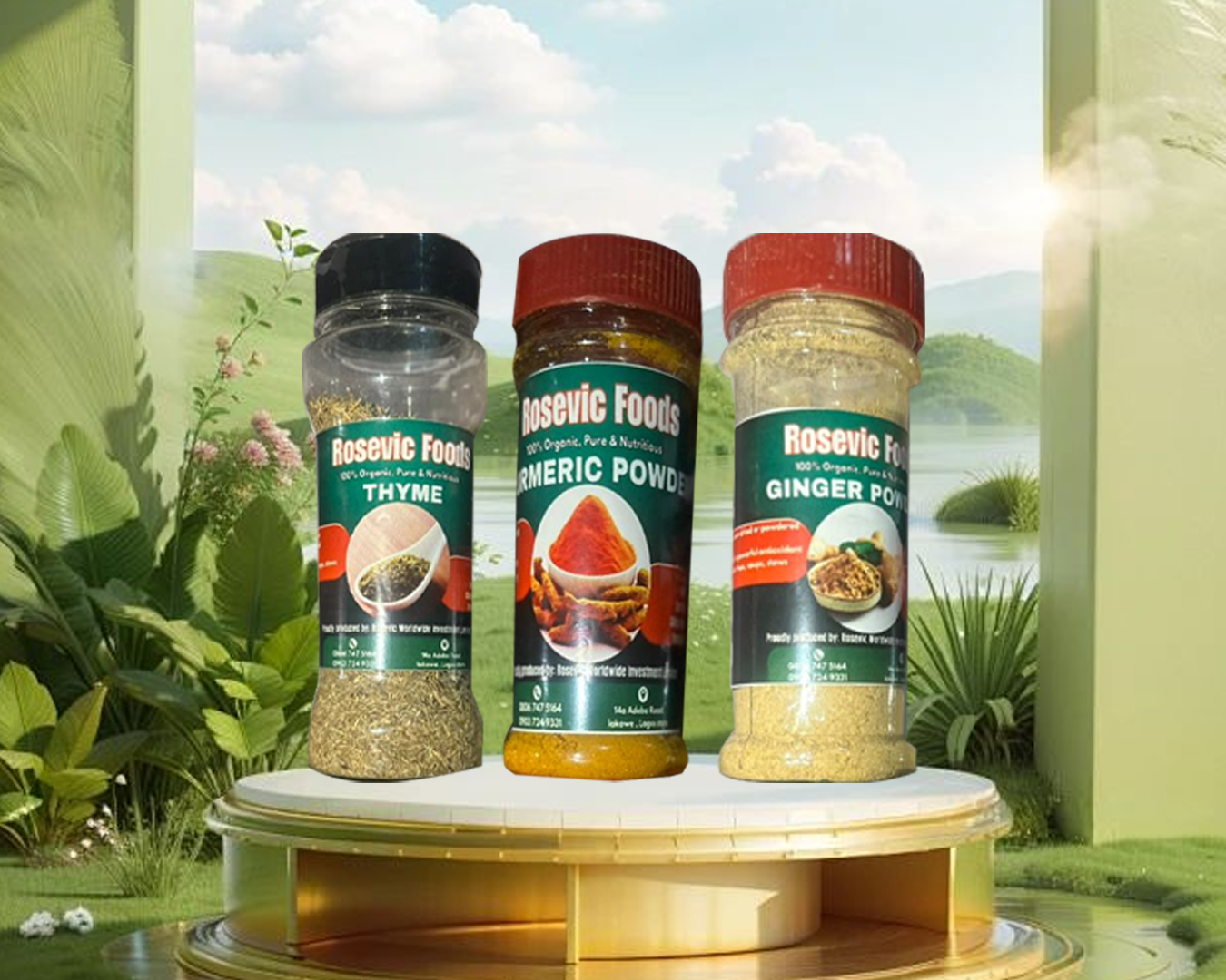 Spices are the backbone of Nigerian cuisine, transforming simple ingredients into bold, memorable dishes. Essentials such as ginger powder, thyme, curry powder, turmeric, Cameroon pepper, red pepper, nutmeg, and jollof spices each contribute unique aroma, heat, and depth.