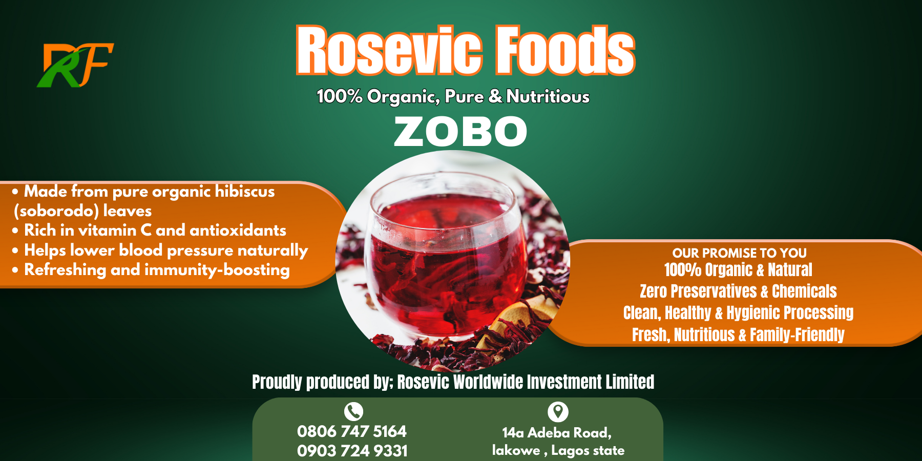 Rosevic Foods Zobo is made from high-quality dried hibiscus leaves, perfect for preparing refreshing, nutritious zobo drinks. Rich in antioxidants and vitamin C, zobo supports immunity and overall wellness. Our zobo leaves are carefully cleaned, dried, and packaged for maximum freshness and color. Enjoy it hot or cold, infused with ginger, pineapple, or cloves for a naturally delicious beverage ideal for every season and lifestyle.